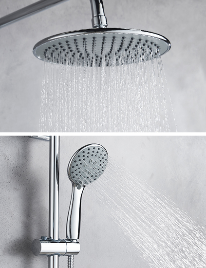 • 9寸大頂噴,4.5寸三功能手持, 淋浴更隨心。